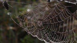 یہ تصویر جالِ عنکبوت کی ہے، جس پر شبنم کے قطرے موتیوں کی مانند جگمگا رہے ہیں۔ یہ معمولی دکھنے والی چیز حقیقت میں فطرت کا ایک حیرت انگیز مظہر ہے، جو گہرے فلسفے، نازک توازن اور عارضی حسن کو نمایاں کرتی ہے۔