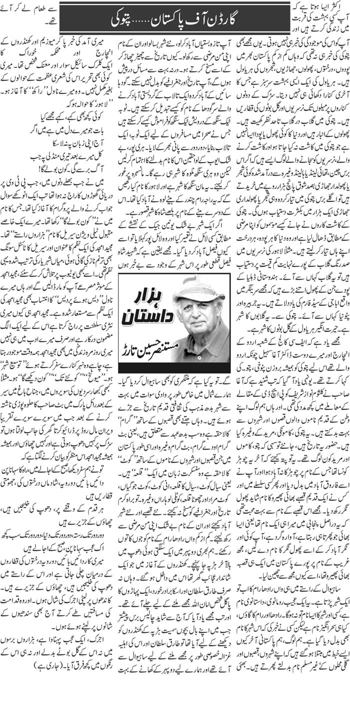 مستنصر تارڑ کا اردو کالم